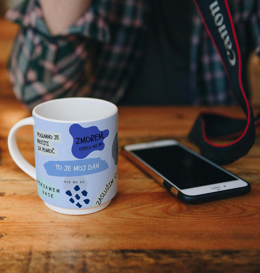 Skodelica, z motivacijskimi sporočili, oddaja in širi pozitivno mišljenje, ki ga učenec, preobremenjen z obveznostmi, še kako potrebuje.