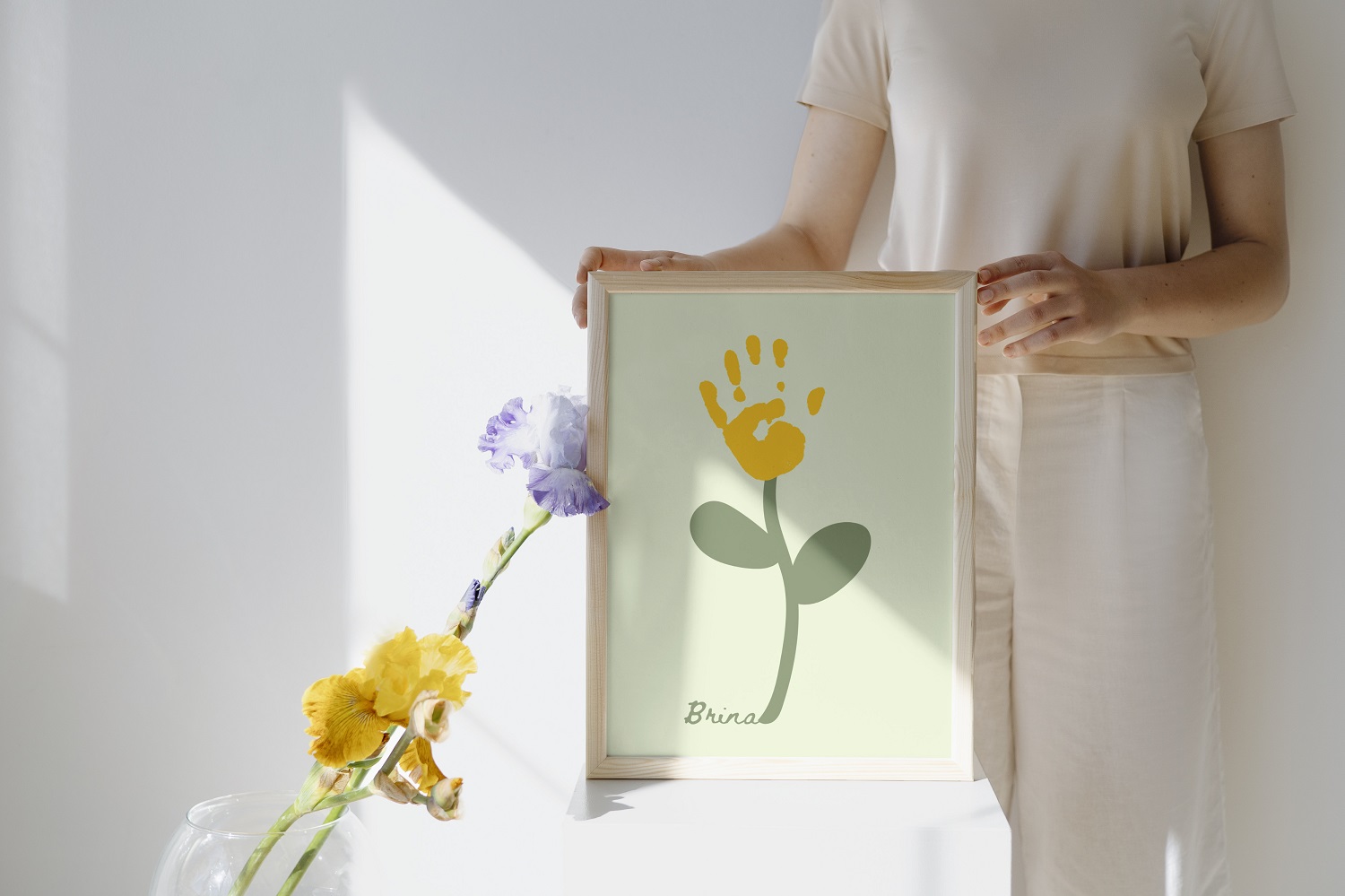 Otroku s prstno barvo pobarvajte blazinico prsta in odtisnite na papir. Dojenčku lahko pobarvate in odtisnete celo dlan. Poimenujte barvo, dele cvetlice, prste na roki, zapojte pesmico o roži ali pomladi… Skratka, naj barvanje otroka obogati z novim znanjem in čudovitim spominom na skupno druženje.