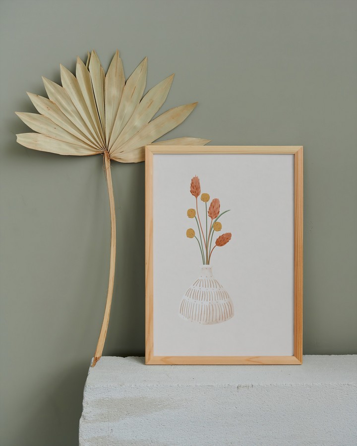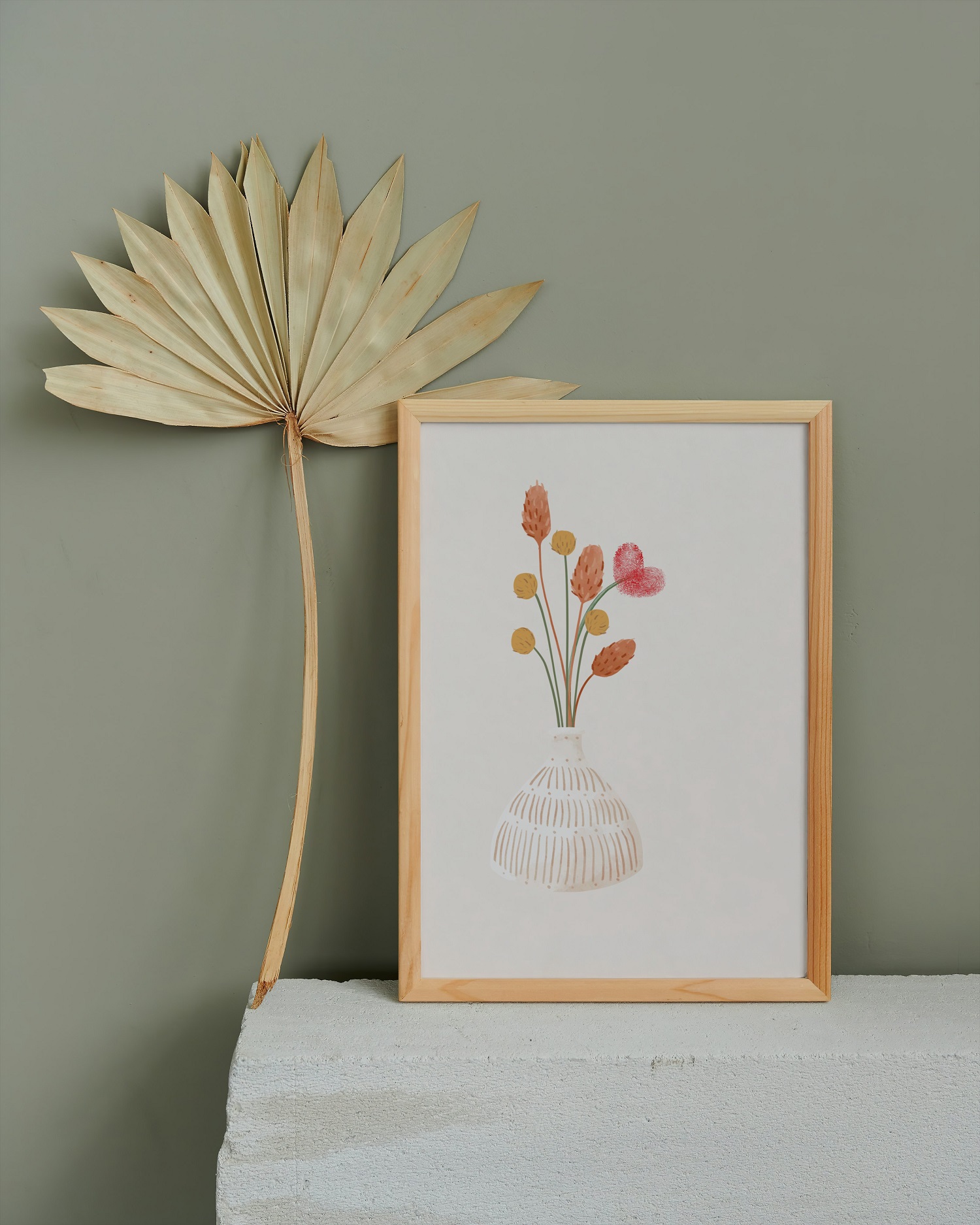 Slika šopka v vazi s pecljem brez cveta- prazen prostor je namenjen odtisom prstka v obliko cveta.